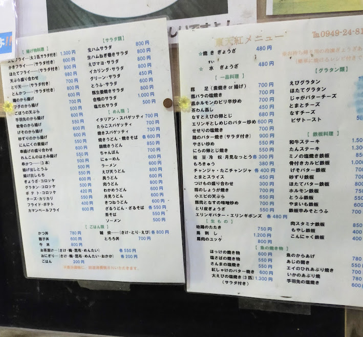 ・メニュー表です。これ以外にも多数あります